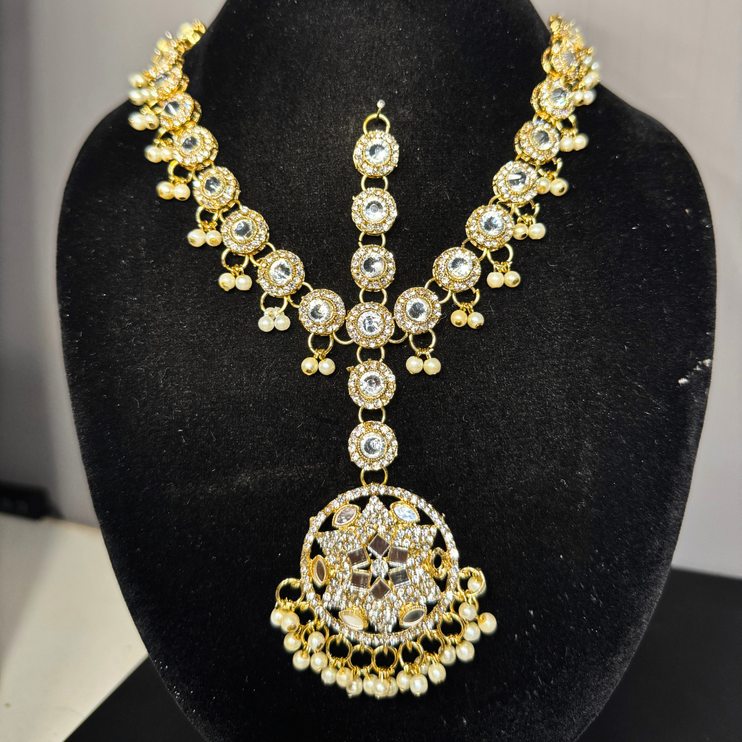 Step into elegance with this exquisite traditional jewelry set, meticulously crafted to elevate your ethnic look. Perfect for weddings, festivals, or special occasions, this complete set features a beautifully designed necklace, matching jhumkay earrings, — everything you need to shine effortlessly.