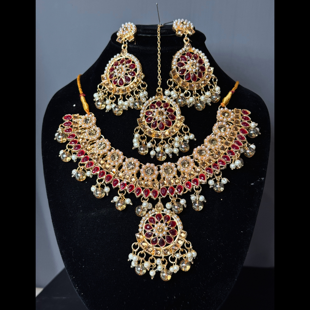 Step into elegance with this exquisite traditional jewelry set, meticulously crafted to elevate your ethnic look. Perfect for weddings, festivals, or special occasions, this complete set features a beautifully designed necklace, matching jhumkay earrings, — everything you need to shine effortlessly.