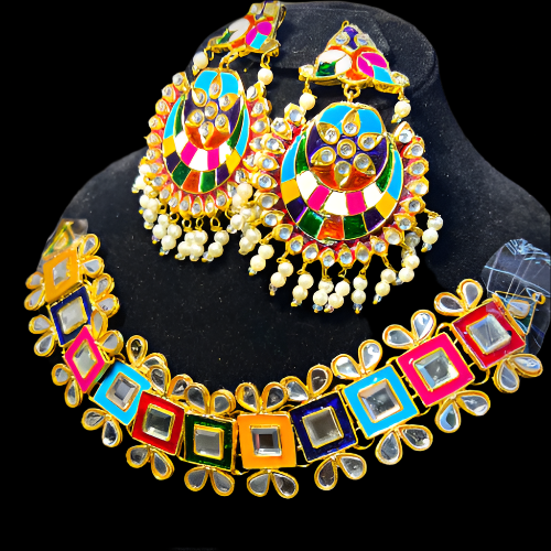 Traditional Stylish Choker Set Necklace With Earrings - Bridal Jewellery - Bridal Choker Jewellery Set - Jewellery Set For Girls