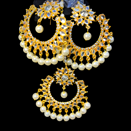 Complete your wedding or festive look with this fancy jewelry set, featuring beautifully designed earrings and a matching tika. Crafted for elegance and charm, this set is perfect for brides, bridesmaids, and women attending special occasions like weddings, parties, or cultural events.
